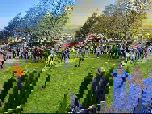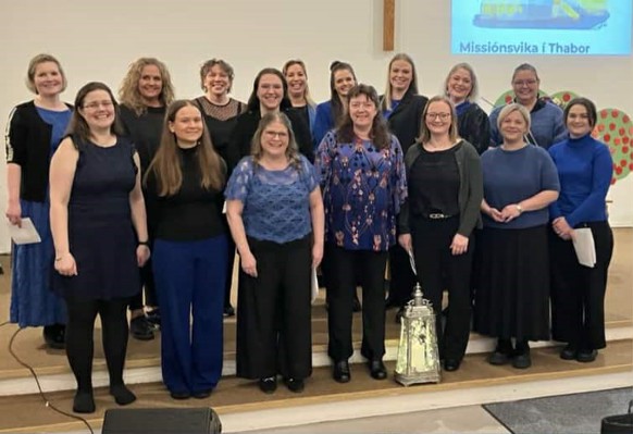 Gospelkórið Lanterna syngur kl. 19.00, uttanfyri í garðinum, um viðrar.