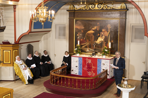 Eg takki kirkjuráðnum í Havnar Kirkju, dómkirkjuni, fyri álitið og møguleikan eg fekk at verða við til at evna Ólavsøkuklæðið til dómkirkjuna.