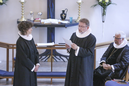 Uni Næs, dómpróstur innsetti Mariu Summers við Skipá í embætið sum sóknarprestur í Norðstreymoyar vestara prestagjaldi.