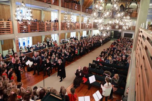 Skúlin hevði í ár eitt stórt skúlakór við, sum eisini spældi saman við næmingum hjá Tónlistaskúlanum, so løtan var rættiliga hátíðarlig, men sanniliga eisini hugnalig.