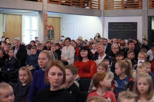 Í gjár var tað barnagarðarnir og starvsfólk teirra, sum vóru til jólaguðstænastu – eini 500 børn og vaksin.