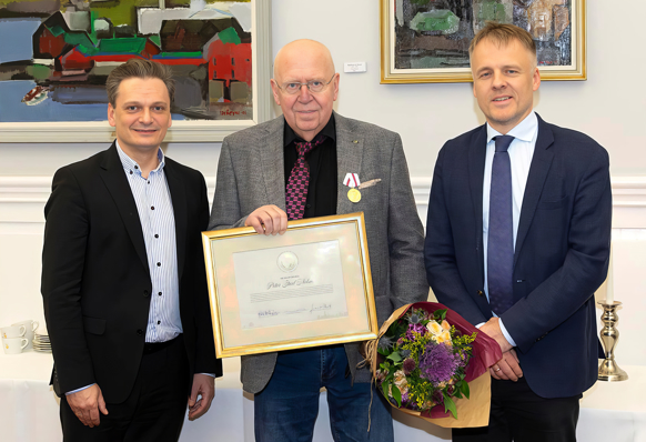 Í heyst fekk Petur Nolsøe handað Gullheiðursmerki Tórshavnar Býráðs fyri sína trúføstu tænastu í Kaldbaks kirkju. Her er hann avmyndaður saman við sóknarprestunum Bergtóri Hjelm Bjarkhamar og Theodor Eli Dam Olsen.
