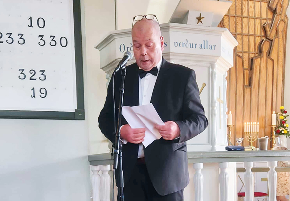 – Eftir gudstænastuna høvdu vit móttøku, har tey vaksnu fingu kransakøku og annað aftur við einum drekkamunni, og okkurt var eisini til børnini. Eg hugsi, at tey allarflestu, sum vóru í kirkju í gjár, eisini steðgaðu á til móttøkuna, sigur Bogi Olsen, kirkjuráðsformaður á Glyvrum, ið sjálvur var fyrsti røðarin.