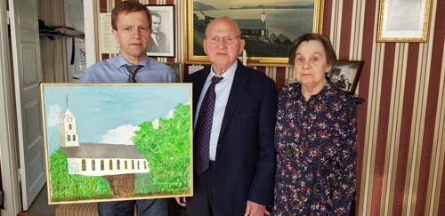 Sverri takkaði fyri og lovaði, at málningurin fær eitt heiðurligt pláss í prestagarðinum í Sandagerði.